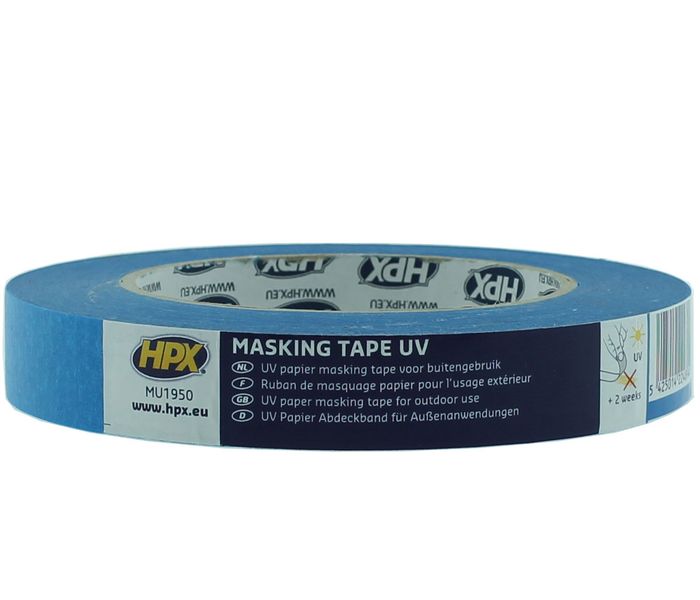 HPX Taśma Odporna na Promieniowanie UV 19 mm na rolce 50 m, która może być używana na zewnątrz i wewnątrz pomieszczeń do malowania, lakierowania, malowania lub szlifowania. Taśma HPX jest odporna na promieniowanie UV i łatwa do usunięcia po 14 dniach bez pozostawiania resztek kleju. Bardzo profesjonalna taśma maskująca do użytku na zewnątrz!