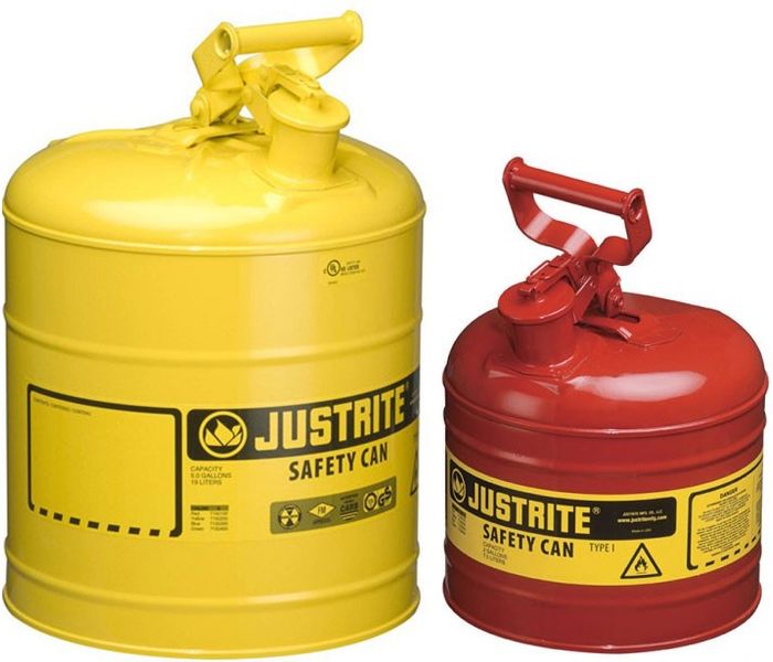 JUSTRITE Pojemnik Bezpieczenstwa to wysokiej jakości metalowy pojemnik do przelewu do bezpiecznego nalewania płynów chemicznych i łatwopalnych bez rozlewania. Pojemnik bezpieczeństwa JUSTRITE jest wykonany z mocnej powłoki proszkowej, dzięki czemu jest odporny na najbardziej agresywne chemikalia. rozcieńczalniki, środki do usuwania farby i inne łatwopalne płyny.