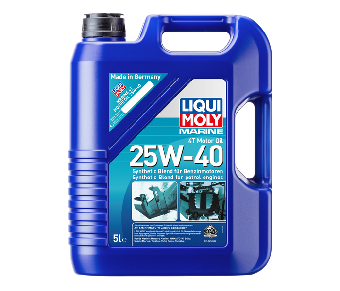Liqui Moly Marine 4T Olej Silnikowy 25W-40 to wysokiej jakości olej silnikowy dla silników łodziowych 4-suwowych, który zapewnia niezawodne smarowanie i długotrwałą ochronę w warunkach morskich. Ten olej silnikowy 25W-40 został specjalnie opracowany dla silników benzynowych i diesla stosowanych na statkach, które są narażone na wysokie obciążenia i zmienne obroty. Dzięki zrównoważonej lepkości film smarujący pozostaje stabilny zarówno przy zimnym rozruchu, jak i podczas długotrwałej żeglugi. Zaawansowana technologia dodatków wspiera czystość silnika i przyczynia się do optymalnych osiągów na wodzie. Idealny dla żeglugi rekreacyjnej i profesjonalnego użytku.