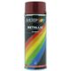 MoTip Czerwony Metaliczny aerozol to szybkoschnący lakier w kolorze czerwonym z zawartym metalicznym brokatem. Aerozol MoTip metaliczny czerwony ma dobrą przyczepność do metalu, tworzywa sztucznego, kamienia, drewna, szkła, żelaza, aluminium i plastiku. Lakier czerwony metaliczny w aerozolu jest szybkoschnący i odporny na zużycie. Dzięki wysokiej jakości MoTip metaliczny czerwony jest lakierem o wysokim stopniu krycia i odpornym na wpływy atmosferyczne.