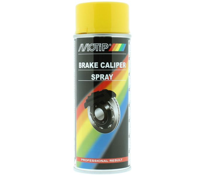 MoTip Farba do Zacisków Hamulcowych ŻÓŁTY aerozol to odporna na wysoką temperaturę farba do malowania zacisków hamulcowych w kolorze żółtym. Ta żółta farba do zacisków hamulcowych ma trwały kolor, połysk i silną przyczepność do zacisków lub klocków hamulcowych. Żółta farba w sprayu MoTip Brake Caliper do zacisków hamulcowych jest odporna na zarysowania, warunki atmosferyczne i ciepło wytwarzane podczas hamowania. Dzięki wysokiej jakości, po spryskaniu zacisków hamulcowych pozostaną one chronione przed rdzą, korozją, pyłem hamulcowym i odpryskami kamieni.