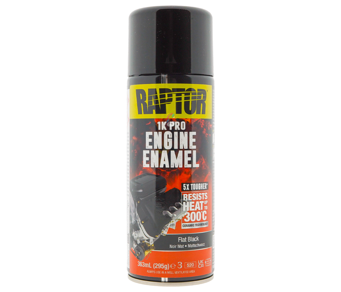 Raptor Engine Enamel w sprayu to profesjonalna farba żaroodporna w kolorze czarny mat do malowania bloków silnika i otaczających je części, które mogą się nagrzewać. Dzięki zaawansowanym żywicom ceramicznym ta farba do bloków silnika jest odporna na temperaturę do 300°C. W rezultacie blok silnika cieszy się długotrwałą ochroną przed wysoką temperaturą, korozją, chemikaliami, olejem i innymi płynami samochodowymi. To sprawia, że spray Raptor Engine Enamel Paint jest idealny zarówno dla entuzjastów motoryzacji, jak i profesjonalistów, którzy chcą pomalować swój blok silnika na czerwono z profesjonalnym wykończeniem.