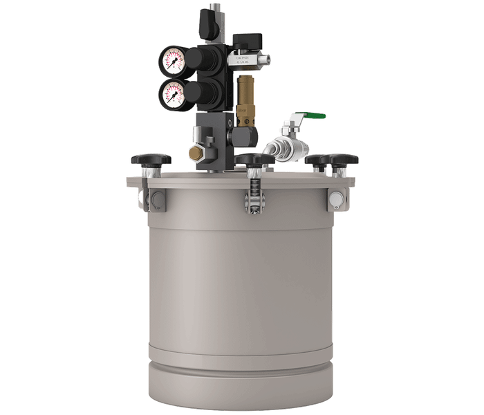 Dzięki temu profesjonalnemu zbiornikowi ciśnieniowemu można łatwo i profesjonalnie aplikować różne powłoki, takie jak lakiery, podkłady i powłoki. Zbiornik ciśnieniowy zapewnia stały przepływ materiału i precyzyjną kontrolę ciśnienia, gwarantując równomierny i gładki rezultat. W obróbce drewna jest często używany do wydajnego lakierowania mebli, drzwi i paneli drewnianych, gdzie gładkie i trwałe wykończenie ma kluczowe znaczenie. W sektorze motoryzacyjnym i przemysłowym zbiornik ciśnieniowy zapewnia również doskonałe rezultaty w przypadku podkładów, farb podkładowych i nawierzchniowych. System inliner umożliwia szybką zmianę koloru i łatwe czyszczenie, oszczędzając czas przy nanoszeniu wielu powłok. Solidna konstrukcja zapewnia długotrwałe i niezawodne użytkowanie. Dzięki optymalnemu podawaniu materiału i regulowanemu ciśnieniu, zbiornik ciśnieniowy nadaje się zarówno do cienkich, jak i lepkich powłok.