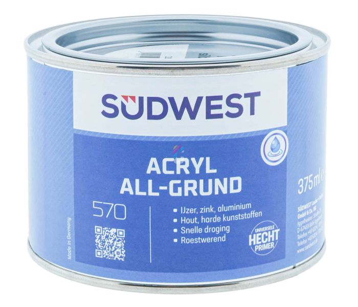 Südwest ACRYL U51 All Grund BIAŁY to najbardziej uniwersalny podkład na bazie wody, który jest odporny na rdzę i szybkoschnący. Ten podkład na bazie wody All Grund ma doskonałą przyczepność do metalu, stali, aluminium, stali nierdzewnej, plastiku, drewna, PVC, melaminy, płytek, a nawet trespy. Ponieważ ten podkład Südwest All Grund jest na bazie wody, nie ma zapachu i jest niskozapachowy. To sprawia, że ten podkład wodny jest idealny do użytku wewnątrz i na zewnątrz.