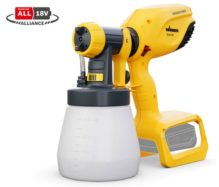 Wagner W250 Bezpowietrzny Pistolet Malarski na Akumulator 18 Volt jest idealny dla każdego, kto chce mieć maksymalną elastyczność podczas malowania. Ponieważ bezpowietrzny pistolet malarski Wagner pracuje na zasilaniu akumulatorowym nie potrzebujesz prądu ani sprężonego powietrza do rozpylania lakieru, farby, bejcy, oleju. To sprawia, że bezprzewodowy rozpylacz farby Wagner jest idealny zarówno do użytku wewnątrz, jak i na zewnątrz. Wagner W250 Bezpowietrzny Pistolet Malarski 18V może być używany zarówno przez początkujących, jak i doświadczonych użytkowników. Ten zasilany bateryjnie elektryczny rozpylacz farby zapewnia równomierne rozpylanie, oszczędzając czas i energię. Nawet skomplikowane powierzchnie, takie jak meble rattanowe, drzwi żaluzjowe lub grzejniki, można łatwo pokryć szczelną warstwą farby lub lakieru za pomocą tego bezpowietrznego pistoletu malarskiego od Wagner.